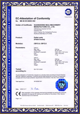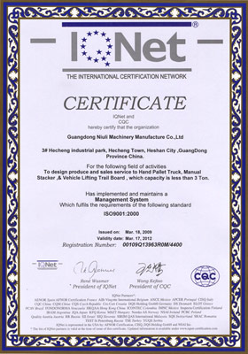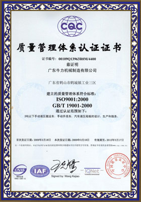 公司先后獲得了ISO9001質(zhì)量管理體系認證,歐洲CE/GS認證,SGS國際認證服務公司認證審核,國家質(zhì)監(jiān)總局頒發(fā)的特種設備制造許可證,廣東省高新技術(shù)企業(yè)認證,廣東省工程技術(shù)研究中心等。