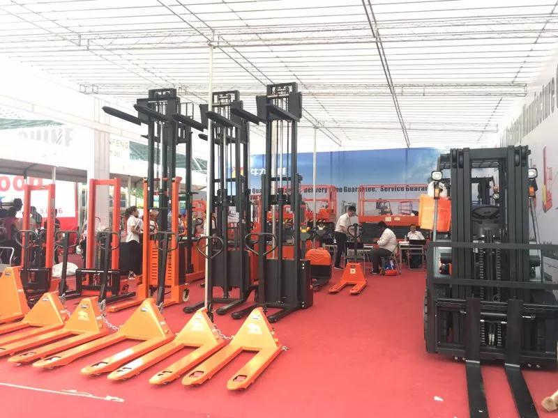 牛力本次參展展出了共三十多個(gè)機(jī)械產(chǎn)品,產(chǎn)品包括:搬運(yùn)車系列、升高車系列、叉車系列、高空作業(yè)平臺系列、汽車尾板系列等幾大系列和三十多種型號的設(shè)備。