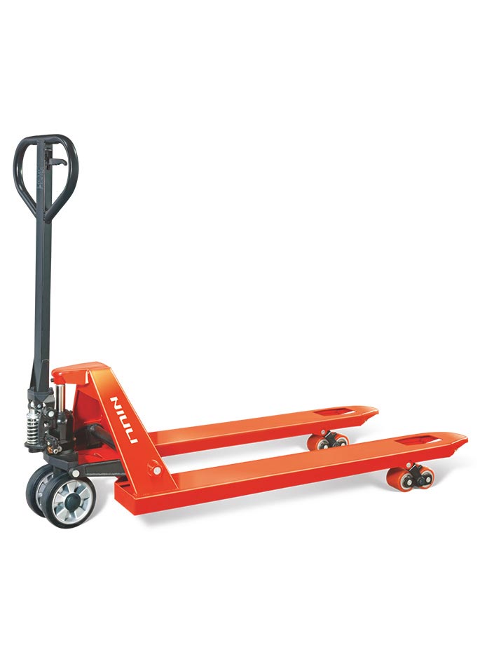 手動(dòng)液壓搬運(yùn)車是簡(jiǎn)便、有效、常見的裝卸、搬運(yùn)工具,是車間貨物搬運(yùn)的好幫手。DF型搬運(yùn)車采用高強(qiáng)度焊接油泵,配置安全閥,油泵殼座為機(jī)械、液壓集成一體化,防漏可靠,免維護(hù)、免裝拆,轉(zhuǎn)彎半徑小。