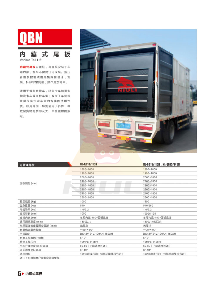 內(nèi)藏式尾板自重輕,可直接安裝于車廂內(nèi)部,整車不需要任何改裝,液壓管路及控制線路是集成化設(shè)計(jì),安裝、拆卸非常簡(jiǎn)便;操作更加簡(jiǎn)單。適用于微型客車,輕型卡車和重型物流卡車等多種車型。