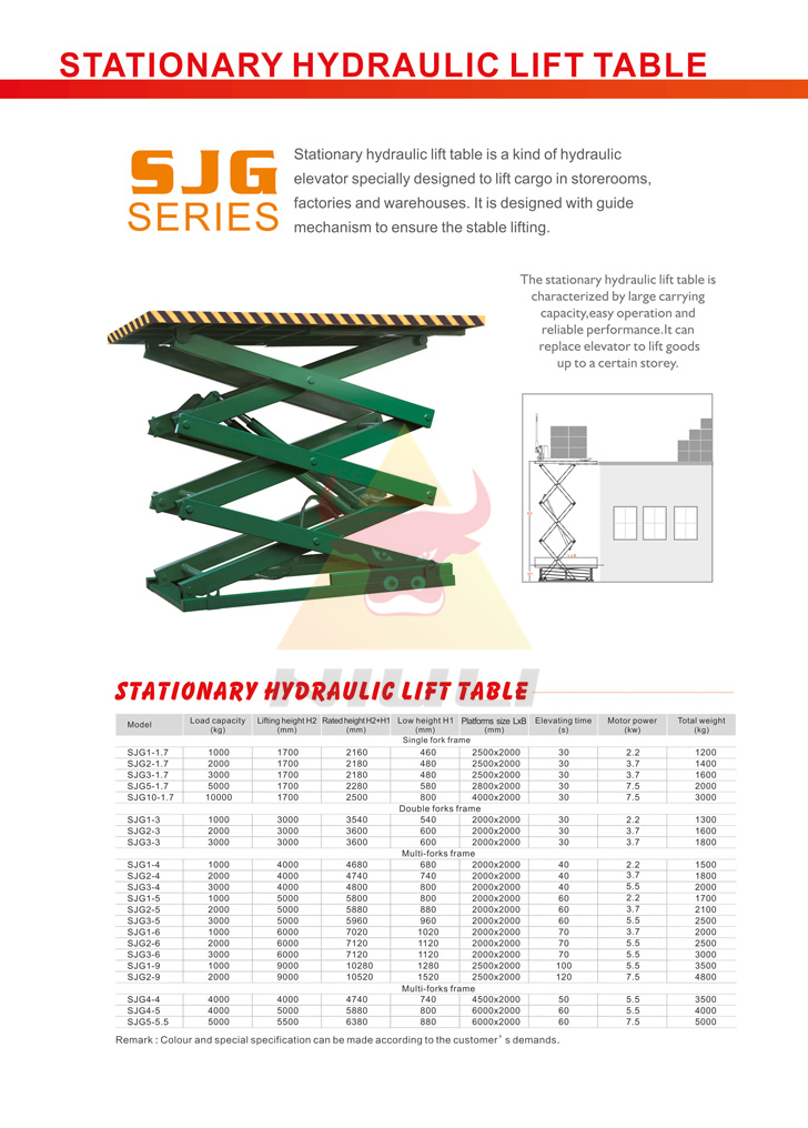Stationary hydraulic lift table is characterized by solid structure,large carrying capacity,stable lifting,easy